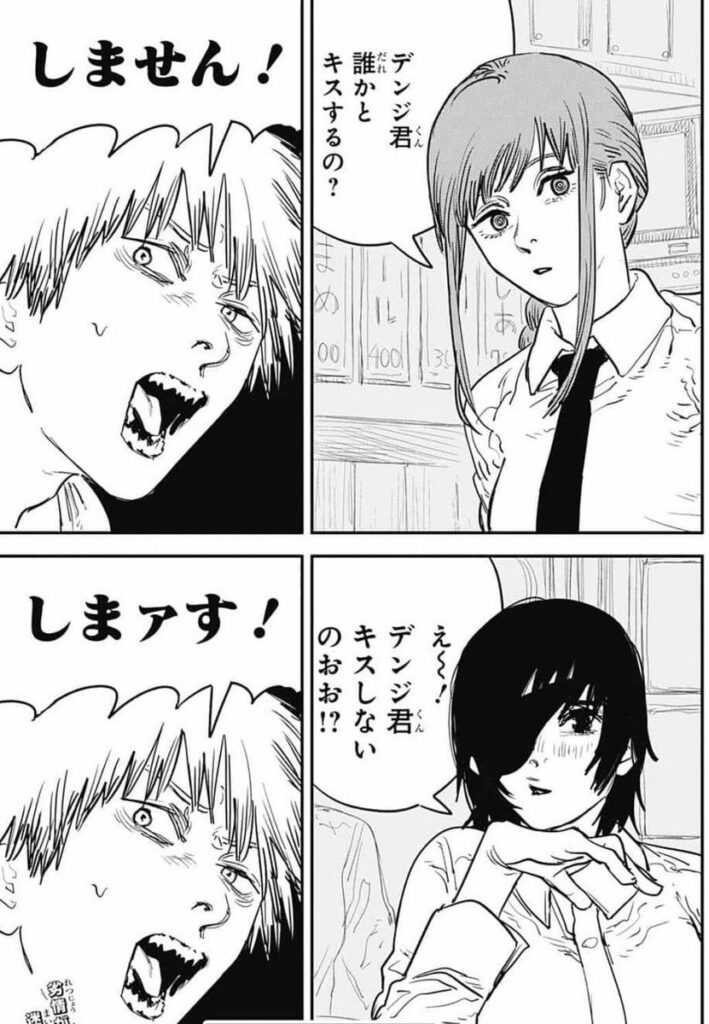 地味に私はこのシーン好きです。何もかも失っていたデンジが初めてマキマの様な美人にうどんを食べさせてもらえた至福の瞬間だったからです。