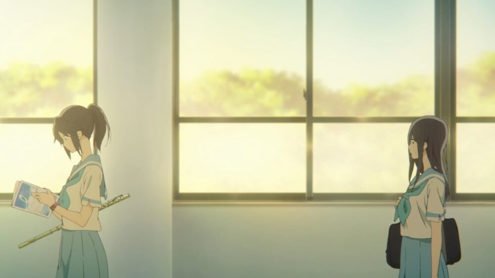 そして、希美はみぞれが新山聡美先生から誘われた音大進学の話しをめぐり、やがて彼女の心には嫉妬心などが顔を出し始めます。みぞれを意識するあまりか、みぞれに対してつい冷たいそぶりを見せてしまってましたね。